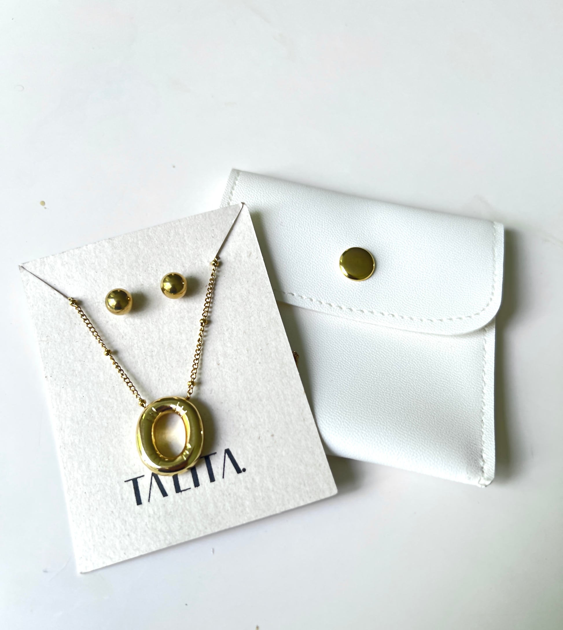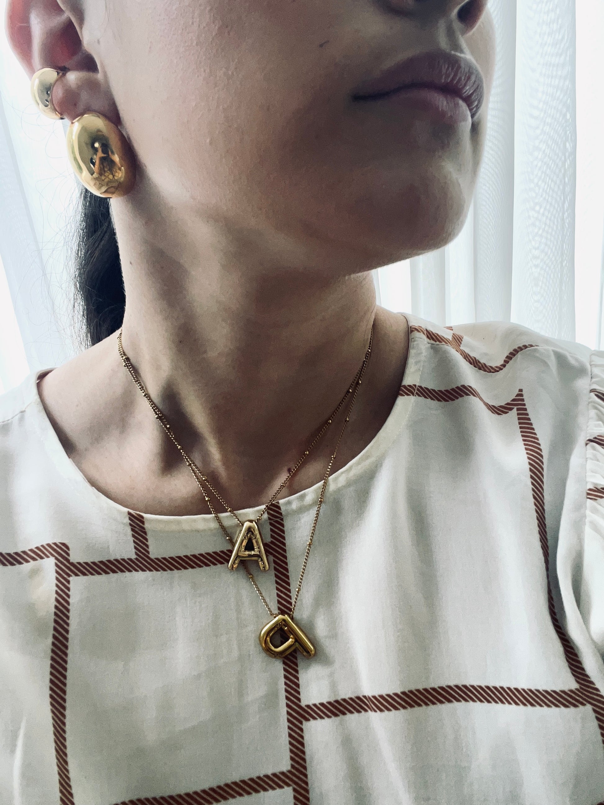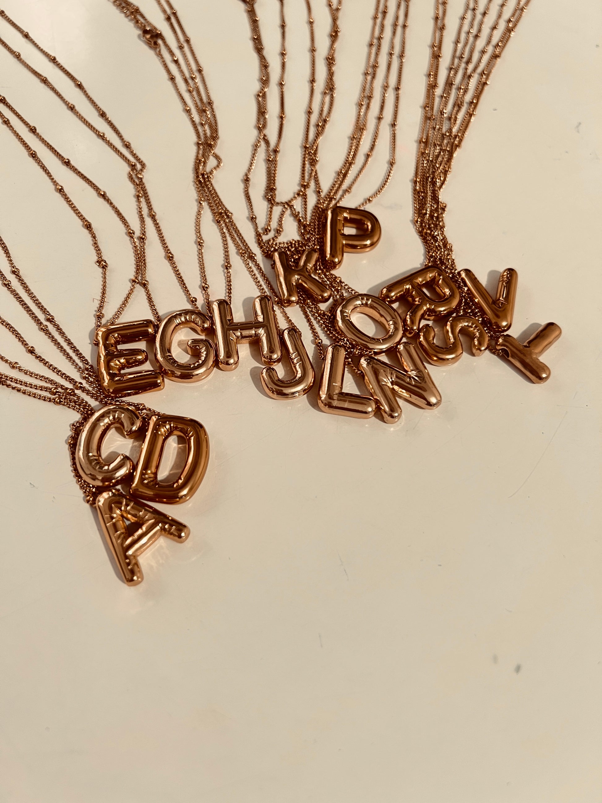 Cadena de letra en acero inoxidable dorada, incluye topos de balín