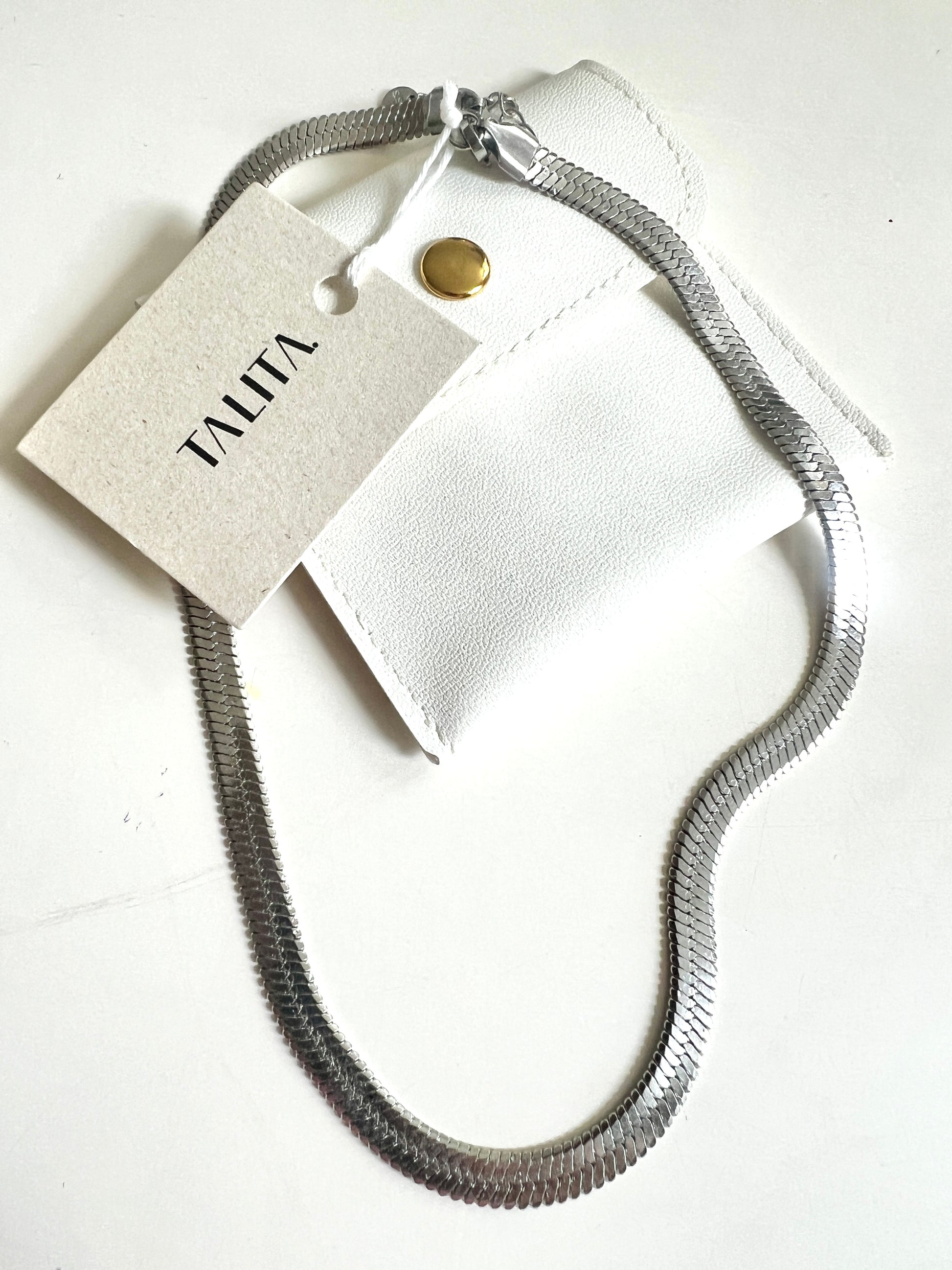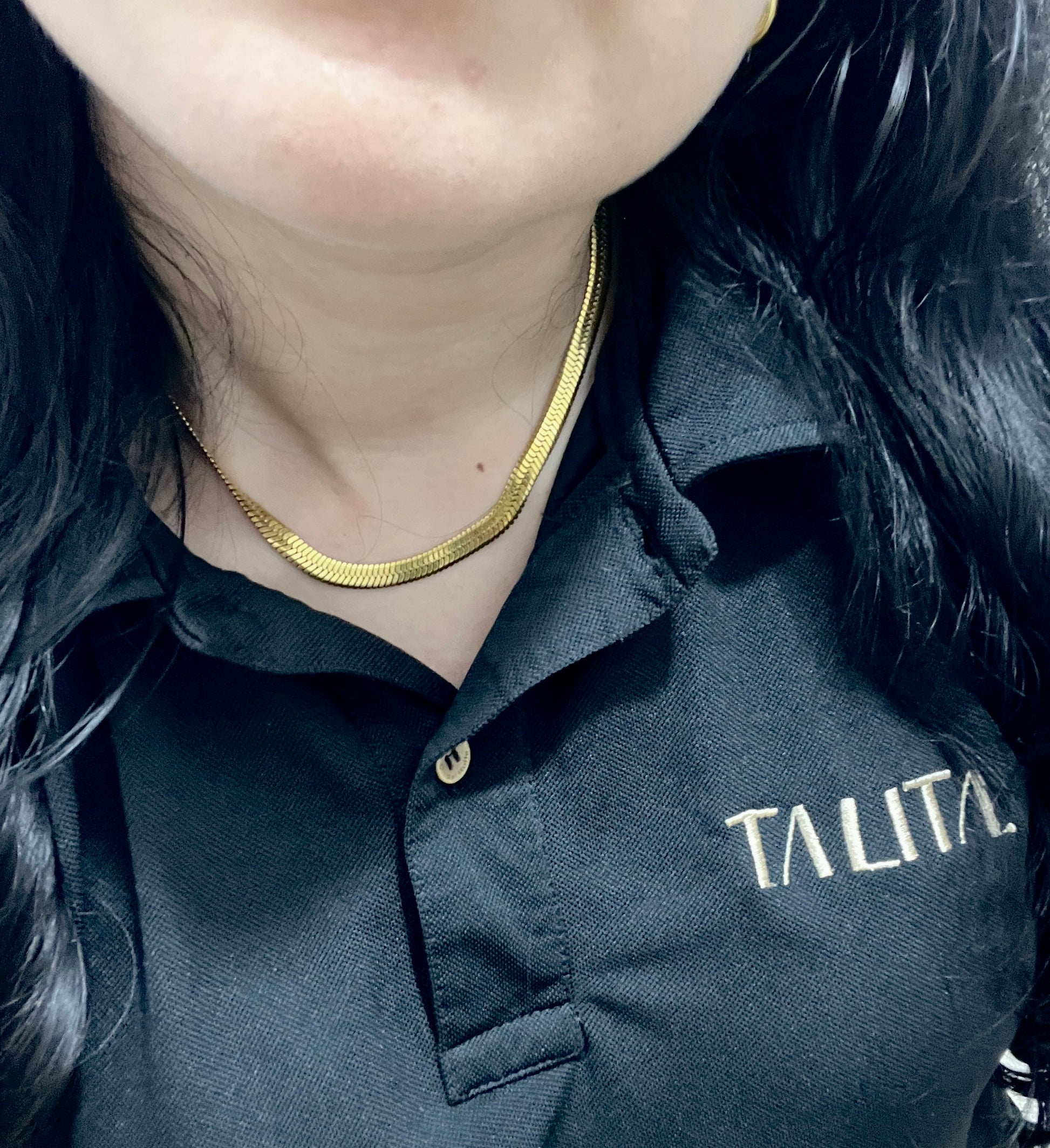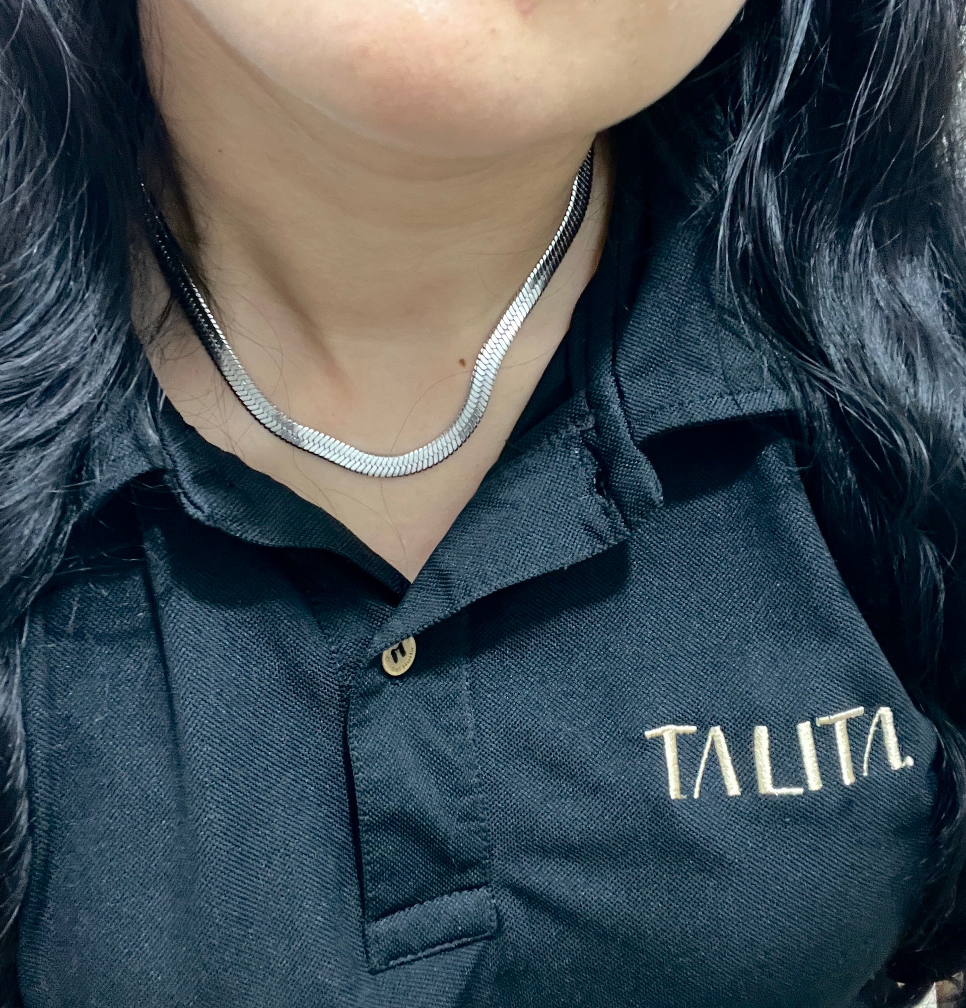Medidas :41.5 cm de largo y 5cm más de cadena de extensión, 5mm de grosor.